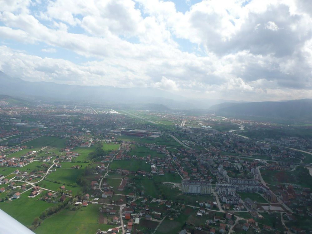 Der Tag beginnt mit einem hausgemachten Frühstück, wir werden abgeholt und zum Platz gebracht, der Wetterausdruck liegt schon bereit, Sarajevo hat 8.000 ft Untergrenze, unterwegs ist mit starken Schauern zu rechnen. Wir bekommen noch Sprit von der Tankstelle und fliegen wie im Flugplan geplant los. Der erste Schauer zwingt uns schon direkt zum 2. WP. Budapest ist sofort hörbereit und gibt Info wie immer. Next Zagreb Info und weiter auf die Panonia Route. Das Wetter wird immer schlechter. Wir haben in 2.000 ft gerade noch Bodensicht. In den Bergen müssen wir auf 5.000 ft steigen, vor Sarajevo auf 6.000 ft gehen. Der Anflug ist mal wieder vom feinsten, 60 kn auf der Nase und im Final 25 Kn Crosswind. Landung mit Applaus der Zuschauer in leichtem Nieselregen. Wir sind da. Unsere Flieger bleiben auf dem Vorfeld stehen und werden mit Betonklötzen gesichert. Wo ist der 3. Flieger aus Luxemburg? Kommt später war meine Antwort. Keine Ahnung wo Georges ist, er will heute die ganze Strecke von Luxemburg fliegen. Später erfahren wir, dass er in Banja-Luka gelandet ist. Das Wetter ist am Abend bei uns gut, blauer Himmel, aber er kommt nicht mehr über die Berge.