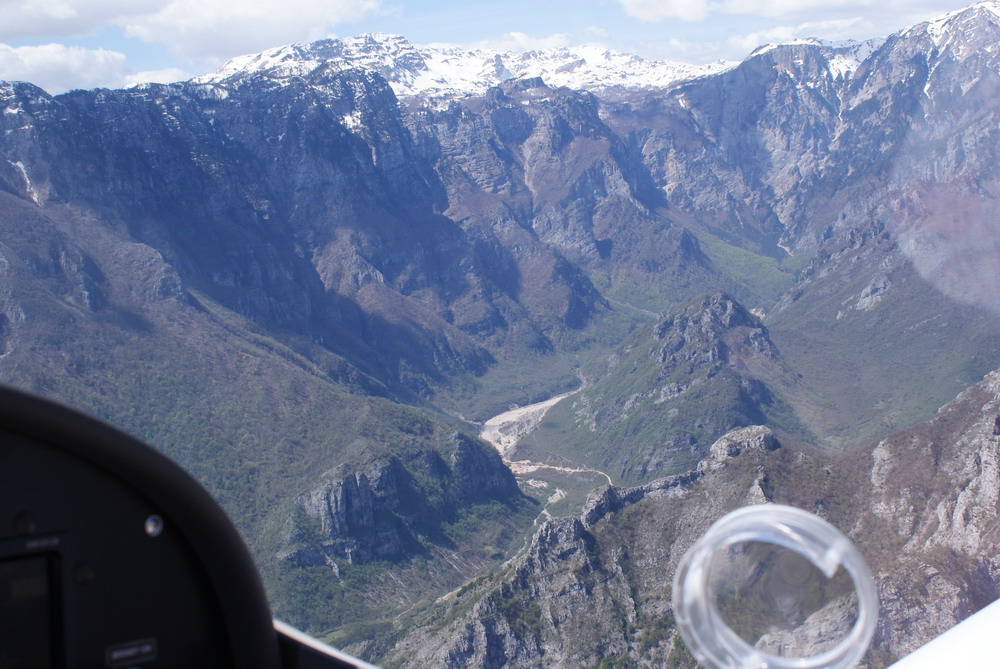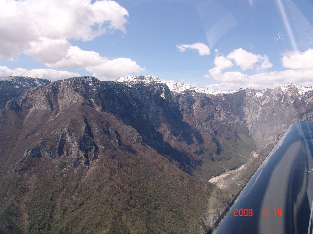 Wir haben zusätzlich 2 Std. für die Vorbereitungen eingeplant. Die brauchen wir auch. Wetterberatung, Briefing, Flugplan, Bezahlen. Um 12:00 heben wir pünktlich ab, diesmal kennen wir den Ausflugspunkt. Durch das Tal der Neretva, die tiefste Schlucht Europas, nach Mostar. Heute ist die Kontrollzone aktiv. Weiter durch die Berge , Centerline 6.000 ft. über Dubrovnik, dann am Meer entlang, unsere Route wird leicht geändert, die Kontroller sind nett und hilfsbereit. Albanien ist kein Problem, wir können an der Küste fliegen. Das Wetter wird langsam schlechter, wir müssen sinken, nach und nach bis auf 1.000 ft. Die Verbindung mit Tirana reißt ab, Kerkira Appr. bekommen wir noch nicht und wir müssen die vorgegebene Route verlassen. Wir fliegen über Wasser, direkt an der Küste entlang. Am vorgegebenen Meldepunkt immer noch kein Kontakt zu Kerkira Appr. Nach kurzer Diskussion beschließen wir über die normale Einflugroute weiterzufliegen. Nun bekommen wir Kontakt zum Turm. Der Anflug wieder Centerline über den Platz und rechts Quer zur 35, die Landefreigabe kommt sofort.