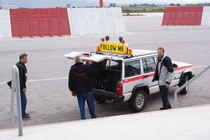 Wir landen in strömenden Regen. Am Rand stehen schon 3 Holländer und warten neben ihrem Flieger auf den Bus. Das Handling ist professionell, ich muss die Zodiac jedoch selbst an ein Drahtseil festbinden.