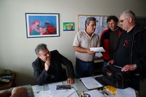 Im Innern erwartet uns eine Plakatfront und macht uns die Bedeutung der 5. Rallye du Nil klar. Kurzes Einchecken, aufs Zimmer und unter die Dusche. Die Begrüssung ist freundlich, die Teilnehmer beschnuppern sich, die Hälfte kenn sich bereits. Das sogenannte Briefing wird zur Katastrophe, Kühlschranktemperatur im Raum und keine Flug-Karten bzw. es sind nur Hyroglyphen auf unleserlichen Kopien. Wir - Briefen morgen - beim Frühstück, Besserung wir versprochen. Das Abendessen ist sehr gut, ich esse zu viel, wie soll ich da mein Gewicht halten?